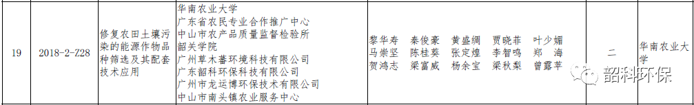 我司參與“修復(fù)農(nóng)田土壤污染的能源作物品種篩選及其配套技術(shù)應(yīng)用項目”獲得2018年度廣東省農(nóng)業(yè)技術(shù)推廣二等獎