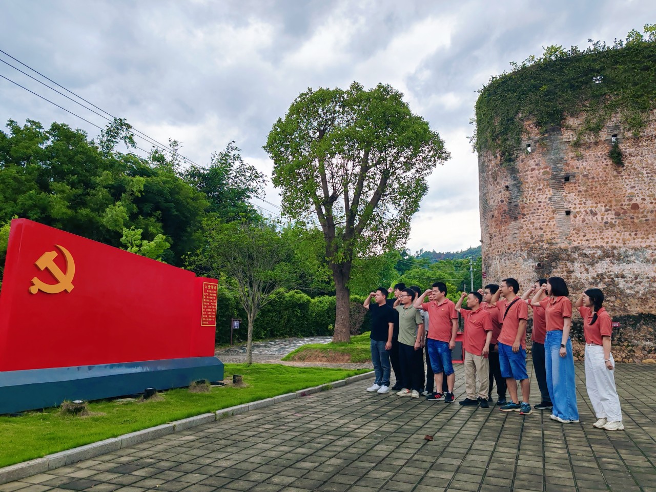 參加活動的黨員同志們一同參觀了廣東省委機關舊址——紅圍,通過觀看宣傳欄里留下的珍貴歷史照片和文字記載的歷史變遷,了解這座近200年歷史的圍樓,歷經歲月的滄桑與戰(zhàn)火的洗禮至今仍然屹立不倒,感受在那血雨腥風的歲月里,中共廣東省委從這里發(fā)出的紅色電波,保持著與黨中央的密切聯(lián)系,指揮南方地區(qū)的抗日戰(zhàn)爭工作。隨后,大家在紅圍前,面對黨旗莊嚴地舉起右拳重溫了入黨誓詞,緬懷老一輩革命先烈的崢嶸歲月,感悟先輩不怕犧牲的英雄事跡,激發(fā)黨員奮斗精神和干事創(chuàng)業(yè)動力。